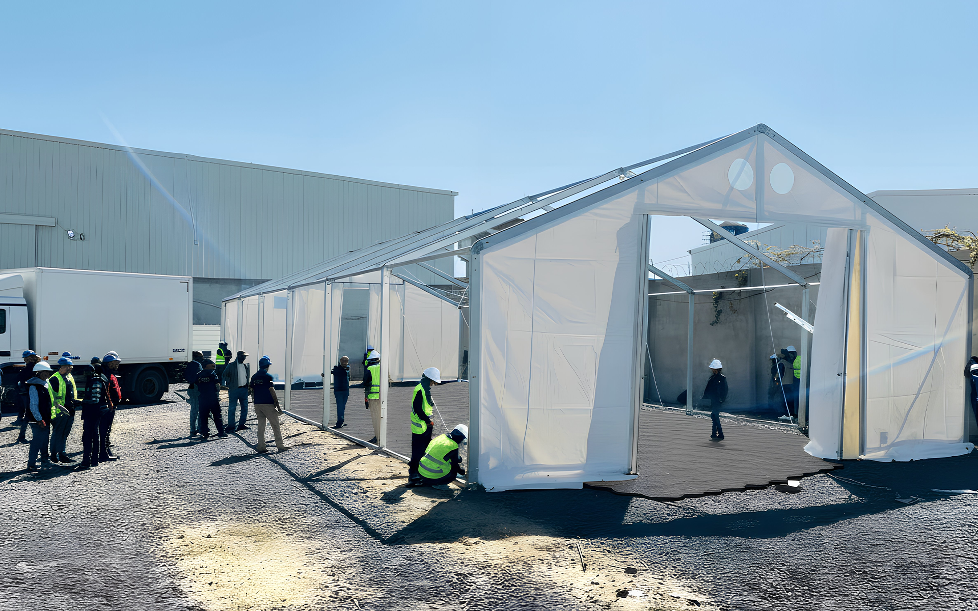 Protecting Floor Tiles makes it possible to establish secure access routes even on weak ground with very low CBR values, such as clay, mud, or sand. With rapid installation and minimal ground preparation, the system creates stable roads that enable ambulances, supply trucks, and emergency teams to reach refugee camps promptly. By bridging unstable terrain, the tiles ensure reliable and continuous access—helping life-saving aid reach those in need when it is most critical.