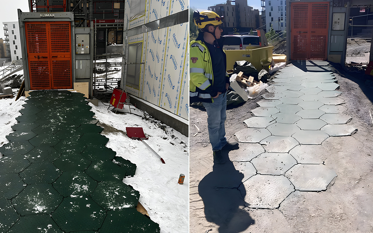 I dag benyttes midlertidige konstruksjoner, som kryssfinerplater kombinert med strekkmetall, for å lage gangbaner, plattformer og underlag foran heiser, innganger og på tak. Det har fungert, men med flere utfordringer: