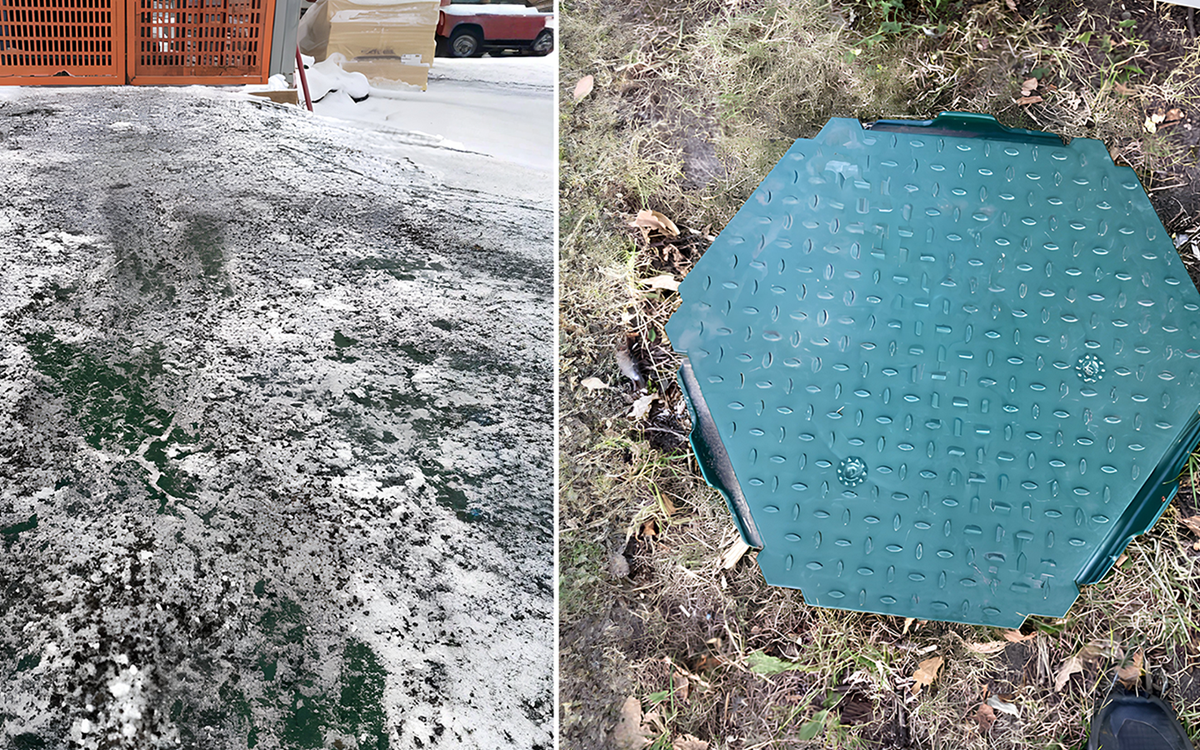 Om vinteren gjelder helt vanlig snørydding – snø og is fjernes enkelt. Isen slipper lett og fester seg ikke på gulvplatene, i motsetning til kryssfiner og strekkmetall, der snø og is smelter sammen og skaper en glatt og vanskelig håndterlig overflate. Med HMS Gulvet får du et underlag som forblir trygt, praktisk og lett å vedlikeholde – selv i tøft vintervær.