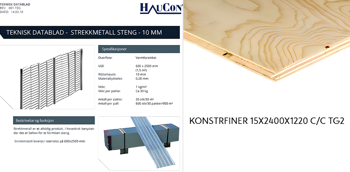 - 200 m² Plywood + strekkmetall pr prosjekt