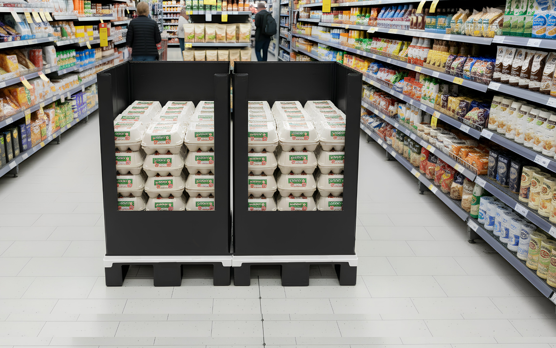 Stabil start: Allt börjar med en stabil grund. RTP Display levereras alltid med tät pallbotten som skyddar godset underifrån och säkerställer maximal stabilitet från första lyftet